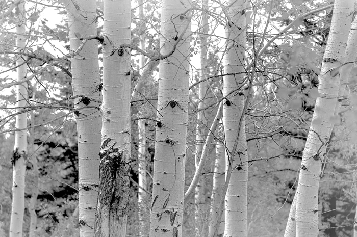 Aspen Grove in the Gros Ventre area of Jackson Hole, Wyoming. Converted in PhotoShop.