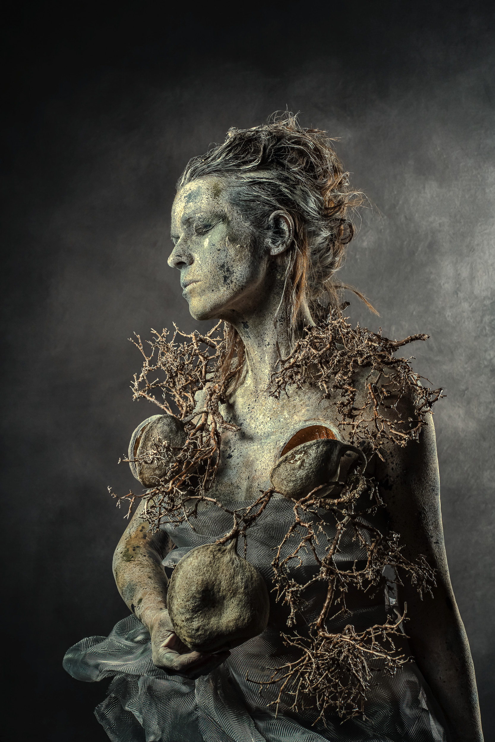 is the soul project initiated by Kerstin and Hermann Berger in the pandemic period, as a protected space where they could live out their ideas, dreams and feelings unrestricted. Kerstin is responsible for everything happening in front of the lens, she is the stylist, prop master, costume designer and body painter of all pictures; and, last but not least, of course, she’s also in front of the camera! Hermann is the photographer, focusing more on the technical aspects of the compositions. Photography has been a great passion for him for a long time, but portrait photography capture all his energy lately. Together they are “Mayathara Photoart”!