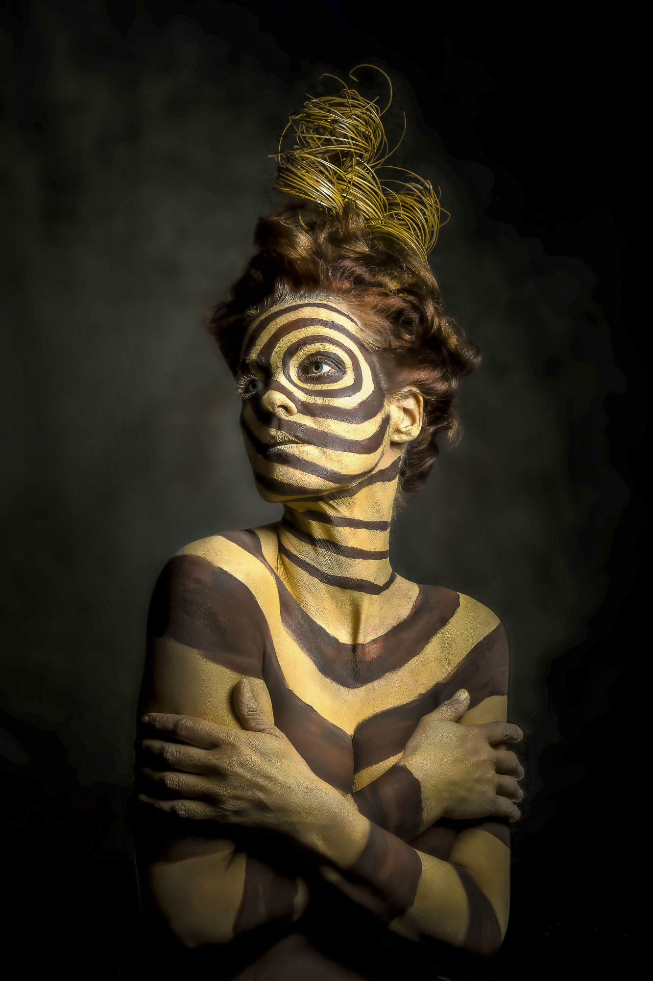 With the COVID – induced lockdown in 2020, we were suddenly blessed with a lot of free time. During this period our joint project “Mayathara Photoart” was born. Here I have found a protected space in which I can live out my ideas, dreams and feelings unrestricted. There are no restrictions neither limits here. I can be what or who I like to be. On the other hand, it always excited me to try out new techniques of bodypainting. The preparation of each shooting is associated with new experience and thus never gets boring. Through my work in front of the camera, as a portrait body artist, my husband´s photography has taken an artistic dimension. From the technical point of view the decision to move away from available light to a focused light setting and flashlight was a big leap.